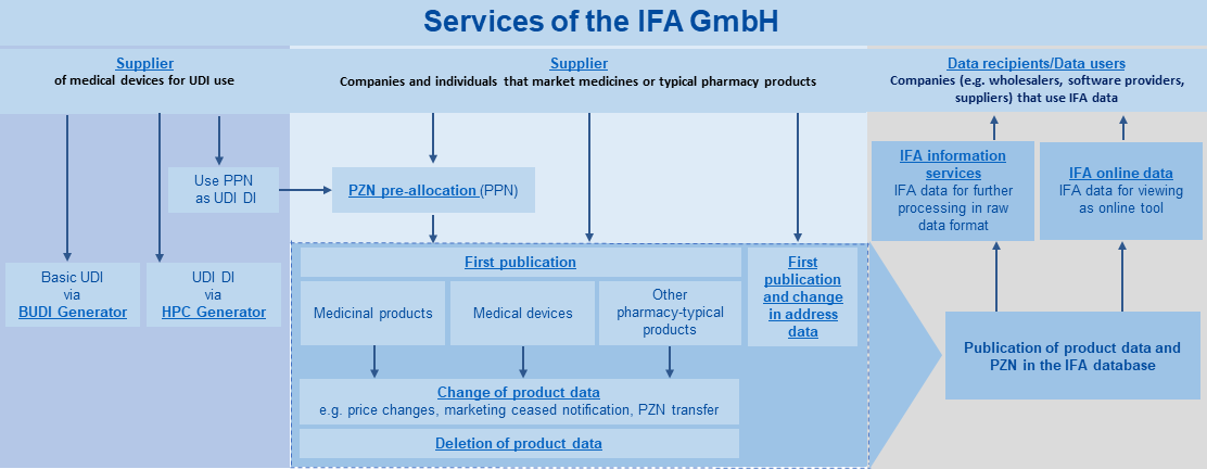 We offer you a convenient way to view and process all data relating to your products that is relevant for trading in the pharmaceutical market. We provide you with PZN as product identification codes valid throughout Germany health care and the logistic chain.